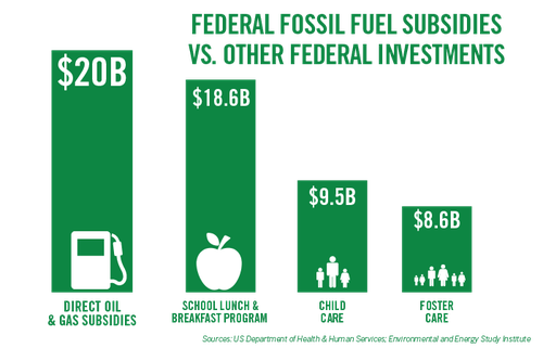 Halt permits and subsidies for fossil fuel exploration and extraction. Globally, the emissions potential of currently developed oil and gas fields and coal mines already will take us beyond the 1.5 degree threshold. Nonetheless, fossil fuel companies are planning to invest trillions in new extraction projects, buoyed in the U.S. by ~$20B in federal subsidies each year thanks to aggressive lobbying. That’s about the same amount of funding as for federal Child Care and Head Start programs, combined.