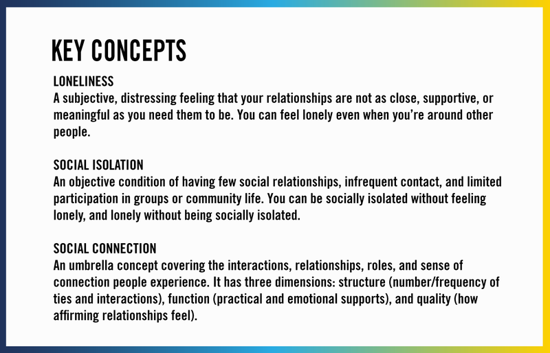 Today, more and more people—across ages, backgrounds, and life circumstances—feel lonely, and it takes a real toll. Social connection is not a “nice-to-have”; it is a driver of health and well-being, with measurable effects on longevity and happiness. It matters at the societal level, too: loneliness contributes to higher healthcare costs, weaker school and workplace outcomes, fraying civic trust, and increased violence.